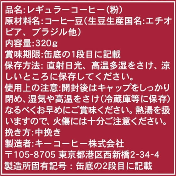 キーコーヒー モカブレンド 320g缶 1缶※軽(ご注文単位1缶)【直送品】