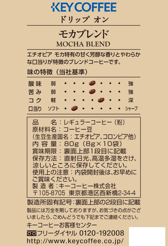 キーコーヒー ドリップオン モカブレンド 10杯分 1パック※軽(ご注文単位1パック)【直送品】