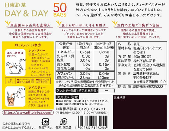 日東紅茶 紅茶ティーバッグ DAY&DAY 50バッグ入 1箱※軽(ご注文単位1箱)【直送品】