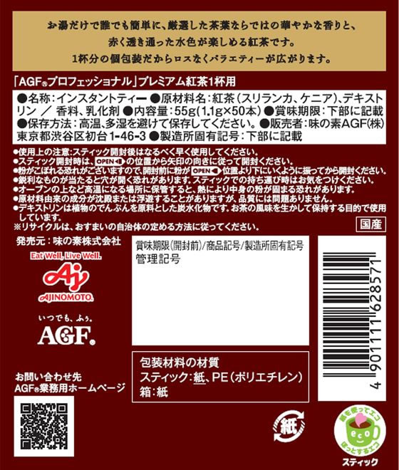 味の素AGF プロフェッショナル プレミアム紅茶 無糖 スティック 50本/箱 ※軽(ご注文単位1箱)【直送品】