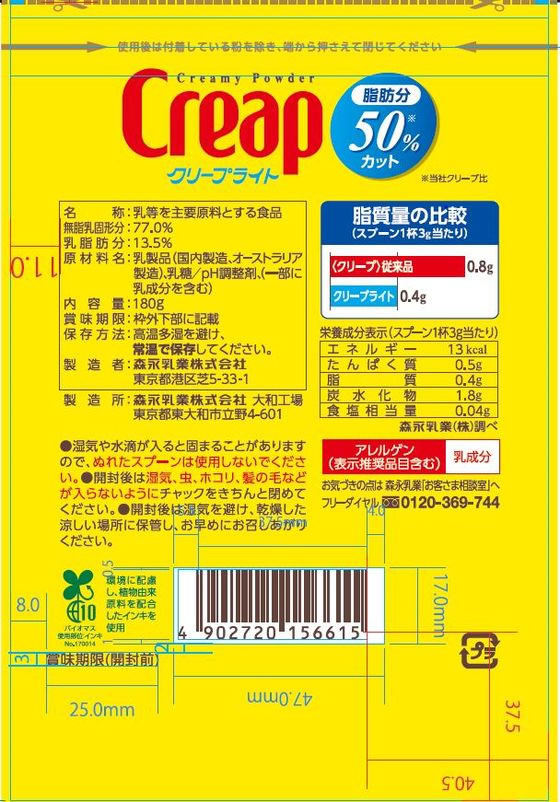森永乳業 クリープライト 袋 180g 1袋※軽(ご注文単位1袋)【直送品】