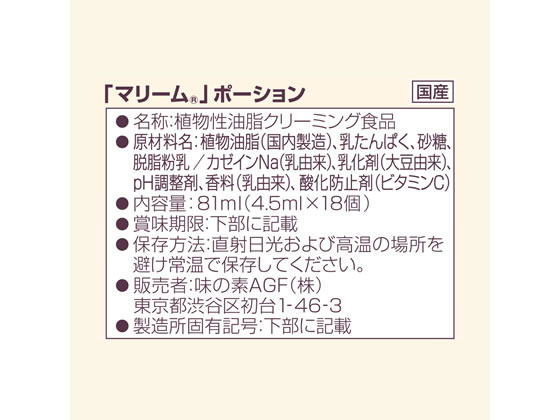 味の素AGF マリーム ポーション 4.5ml 18個/袋 ※軽(ご注文単位1袋)【直送品】