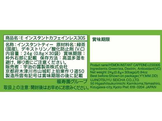 宇治の露製茶 伊右衛門 カフェインレスインスタント緑茶スティック 1箱※軽(ご注文単位1箱)【直送品】