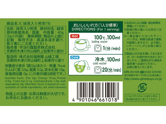宇治の露製茶 伊右衛門抹茶入り煎茶ティーバック 20×12箱 1ケース※軽(ご注文単位1ケース)【直送品】
