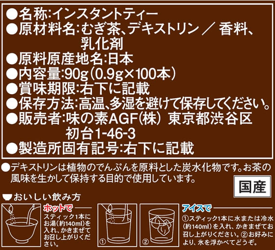 AGF 新茶人 早溶け旨茶 むぎ茶スティック 100本 1箱※軽(ご注文単位1箱)【直送品】
