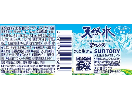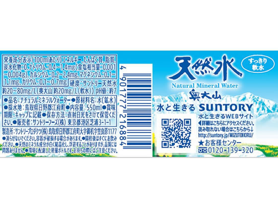 サントリー 天然水 550ml 1本※軽(ご注文単位1本)【直送品】