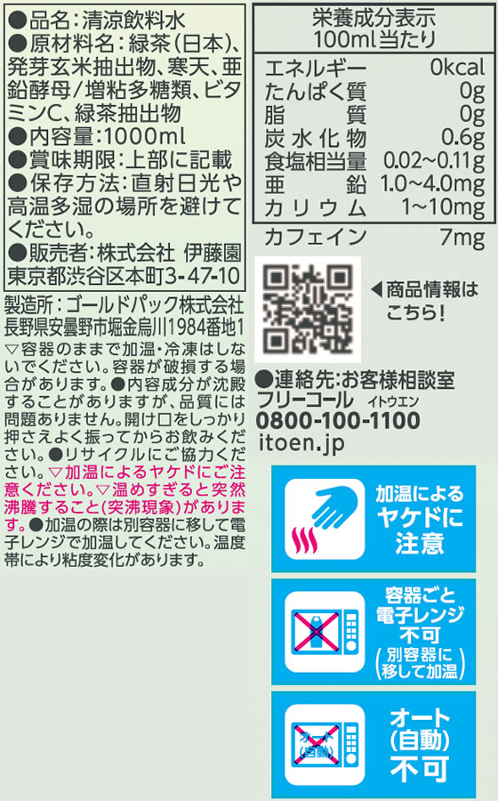 伊藤園 とろり緑茶 屋根型キャップ付き 1L×6本 1箱※軽(ご注文単位1箱)【直送品】