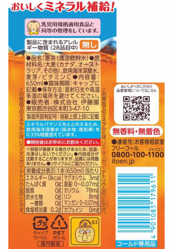 伊藤園 健康ミネラルむぎ茶 650ml 1本※軽(ご注文単位1本)【直送品】