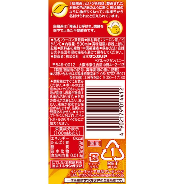 日本サンガリア あなたの烏龍茶 500ml 1本※軽(ご注文単位1本)【直送品】