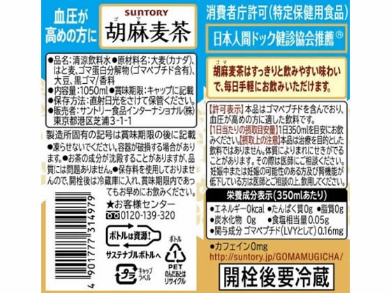サントリー 胡麻麦茶 1.05L×12本 1箱※軽(ご注文単位1箱)【直送品】