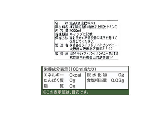 お茶屋さんの緑茶 2L 1本※軽(ご注文単位1本)【直送品】