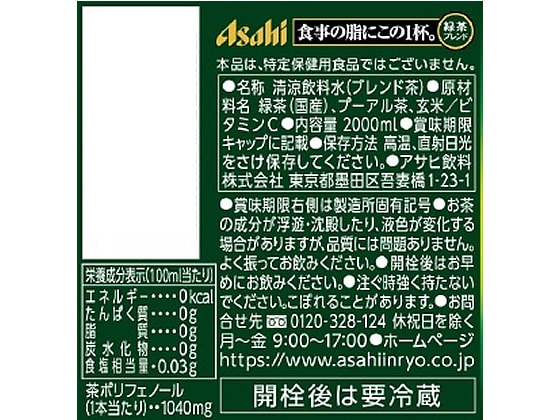 アサヒ飲料 食事の脂にこの1杯。緑茶ブレンド 2L 1本※軽(ご注文単位1本)【直送品】