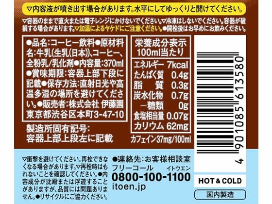 伊藤園 TULLY’S COFFEE バリスタズ ラテ 370ml 1本※軽(ご注文単位1本)【直送品】