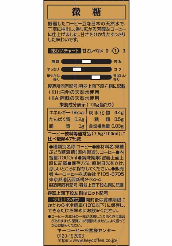 KEYDOORS+リキッドコーヒー テトラプリズマ 微糖 1000ml×12本 1セット※軽(ご注文単位1セット)【直送品】