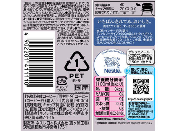 ネスレ ネスカフェ エクセラボトルコーヒー無糖 900ml 1本※軽(ご注文単位1本)【直送品】