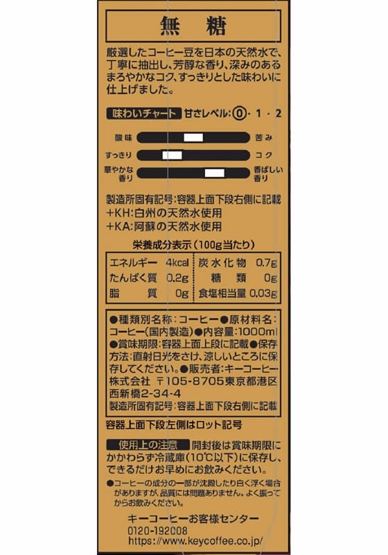 KEYDOORS+リキッドコーヒー テトラプリズマ 無糖 1000ml×6本 1箱※軽(ご注文単位1箱)【直送品】