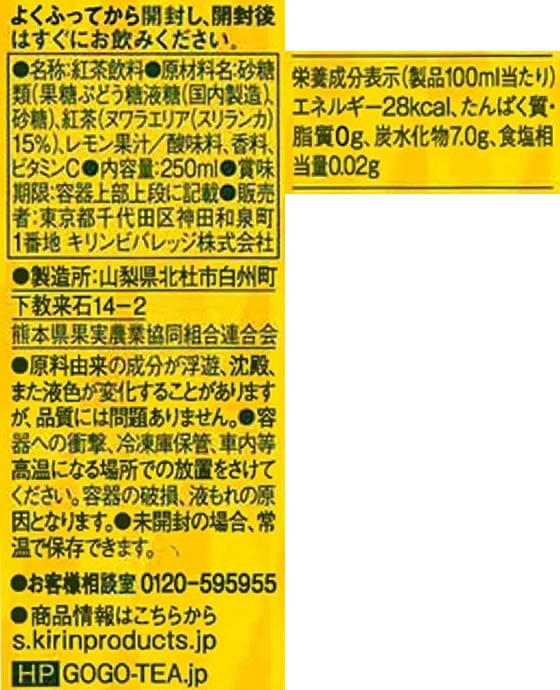 キリン 午後の紅茶 レモンティー 250ml LLスリム 1本※軽(ご注文単位1本)【直送品】
