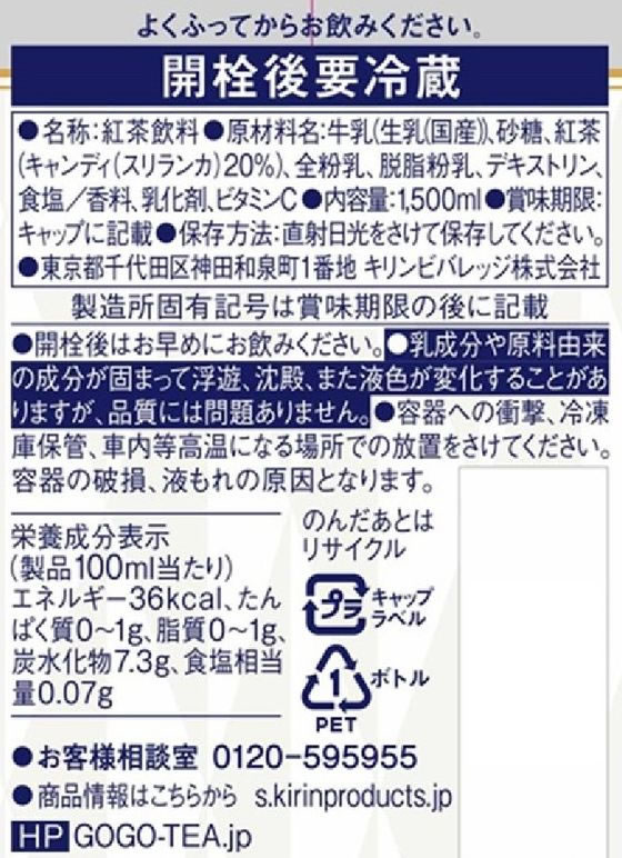 キリン 午後の紅茶 ミルクティー 1.5L 1本※軽(ご注文単位1本)【直送品】