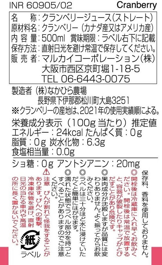 マルカイコーポレーション 順造選クランベリー100 500ml 1本※軽(ご注文単位1本)【直送品】