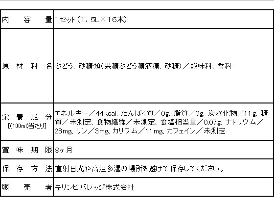 キリン 小岩井 純水ぶどう 1.5L×16本 1セット※軽(ご注文単位1セット)【直送品】