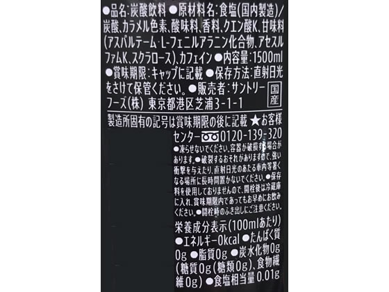 サントリー ペプシ〈メガ生〉ゼロ 1.5L×8本 1箱※軽(ご注文単位1箱)【直送品】