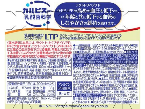 アサヒ飲料 カルピス アミールW 100ml×6本 1パック※軽(ご注文単位1パック)【直送品】