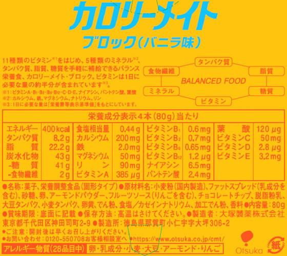 大塚製薬 カロリーメイトブロック バニラ味(4本入り)×10箱 1箱※軽(ご注文単位1箱)【直送品】
