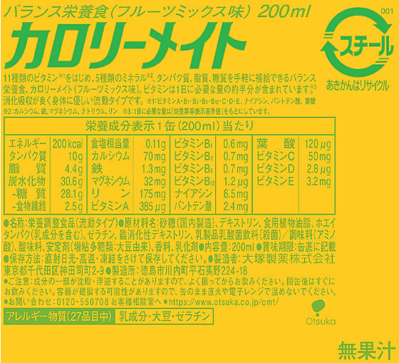 大塚製薬 カロリーメイトリキッド フルーツミックス味 200ml×30缶 1箱※軽(ご注文単位1箱)【直送品】
