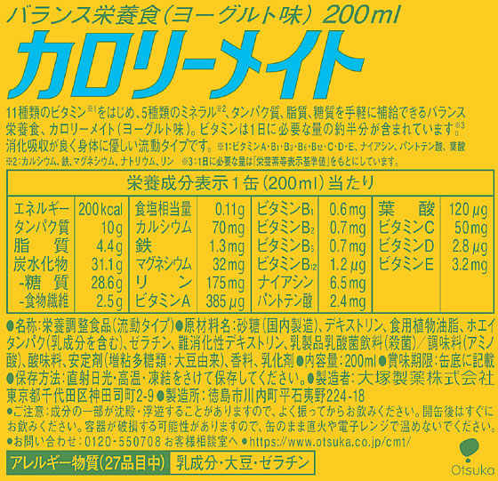 大塚製薬 カロリーメイトリキッド ヨーグルト味 200ml 1缶※軽(ご注文単位1缶)【直送品】