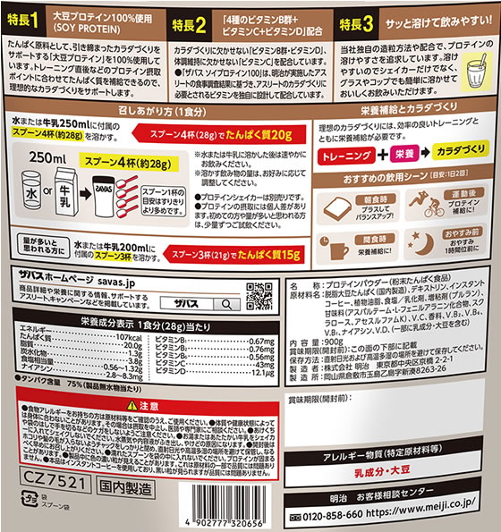 明治 ザバス ソイプロテイン100 カフェラテ風味 900g 1個※軽(ご注文単位1個)【直送品】