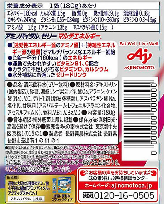 味の素 アミノバイタル ゼリードリンク マルチエネルギー 180g 1個※軽(ご注文単位1個)【直送品】
