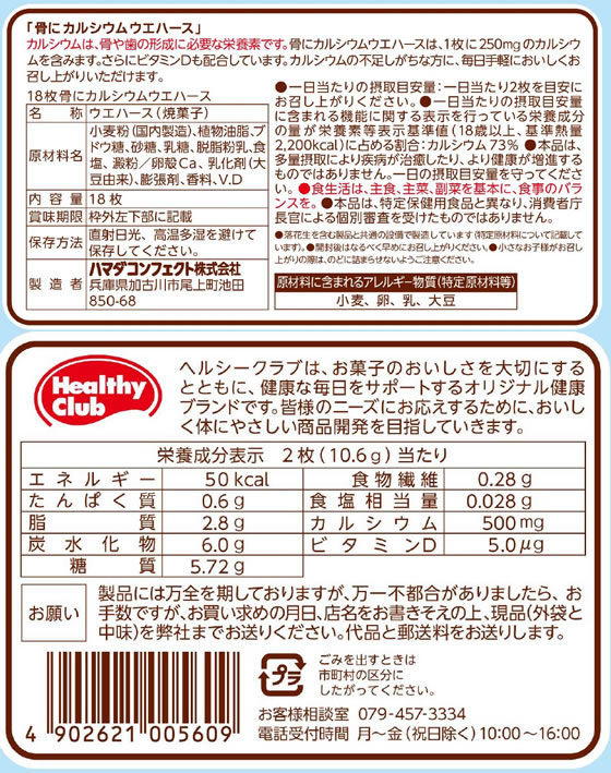 ハマダコンフェクト 骨にカルシウムウエハース 18枚 1個※軽(ご注文単位1個)【直送品】