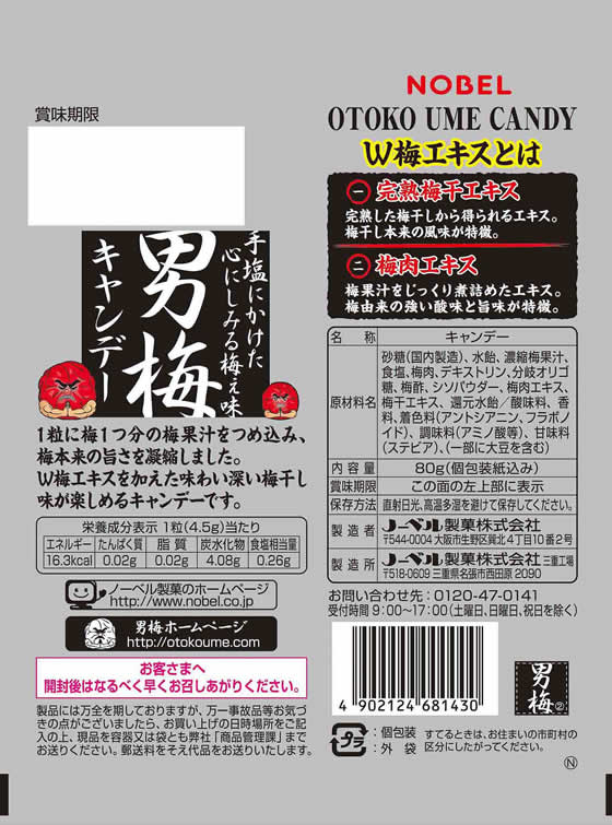 ノーベル 男梅 キャンディー 80g 1袋※軽(ご注文単位1袋)【直送品】
