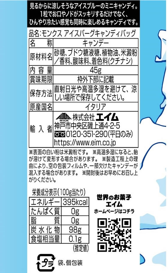 アケラス モンクス アイスバーグキャンディーバッグ 45g 1袋※軽(ご注文単位1袋)【直送品】