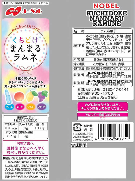 ノーベル くちどけ まんまるラムネ 1袋※軽(ご注文単位1袋)【直送品】