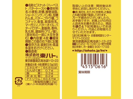 東ハト パーソナルハーベスト バタートースト 4枚×16袋 1箱※軽(ご注文単位1箱)【直送品】