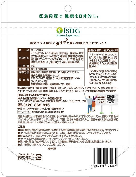 医食同源 オクラ&長芋スナック うめ味 50g 1個※軽(ご注文単位1個)【直送品】