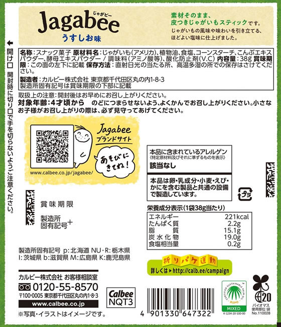 カルビー ジャガビーうすしお味 38g 1個※軽(ご注文単位1個)【直送品】