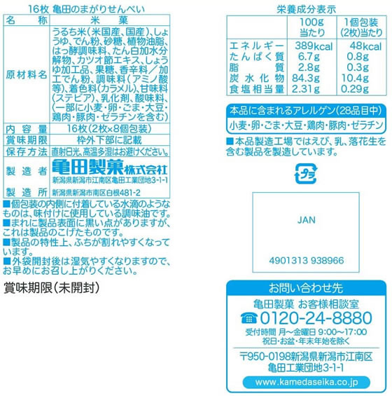 亀田製菓 まがりせんべい 16枚×12袋 1箱※軽(ご注文単位1箱)【直送品】