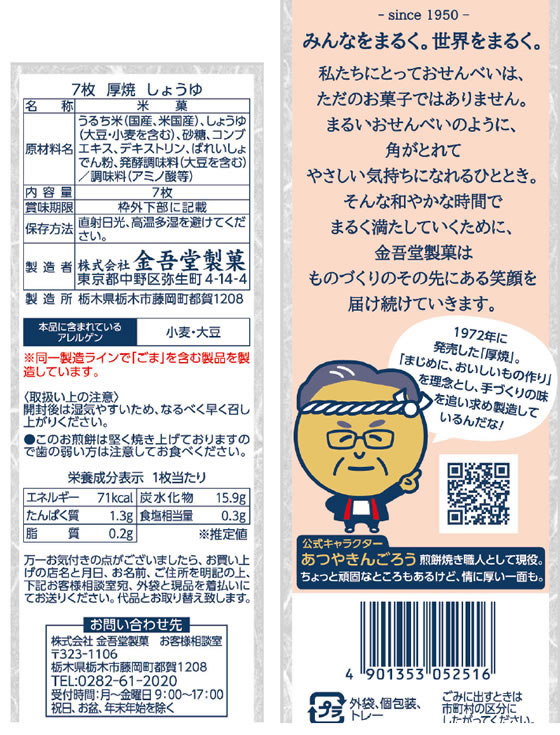 金吾堂製菓 厚焼しょうゆ 1袋※軽(ご注文単位1袋)【直送品】