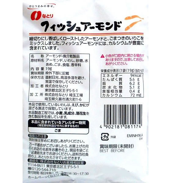 なとり アーモンドフィッシュJP 19g 1個※軽(ご注文単位1個)【直送品】