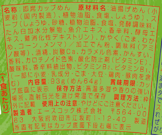 エースコック わかめラーメン ごま・しょうゆ 93g 1個※軽(ご注文単位1個)【直送品】