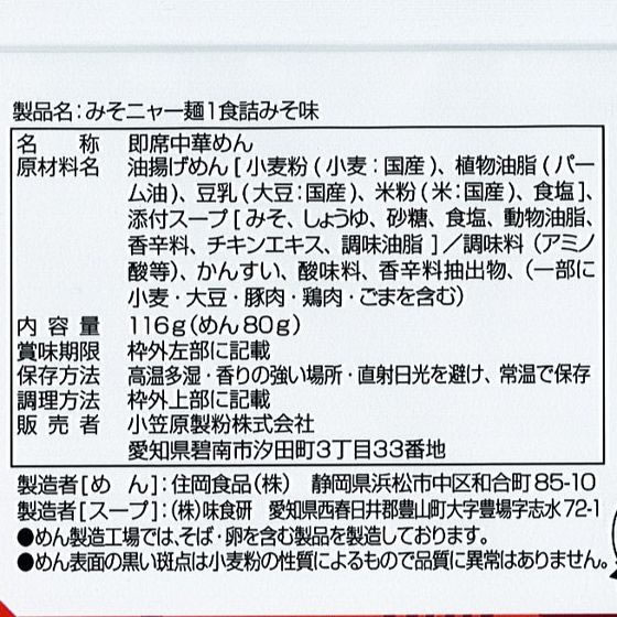 小笠原製粉 みそニャー麺 みそ味 1袋※軽(ご注文単位1袋)【直送品】