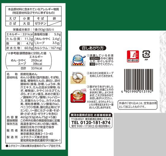 東洋水産 天ぷらそば 5食パック 1個※軽(ご注文単位1個)【直送品】