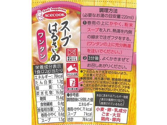 エースコック スープはるさめ ワンタン 22g×6食 1箱※軽(ご注文単位1箱)【直送品】