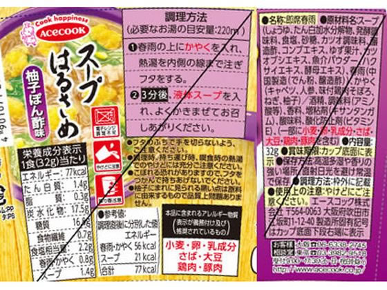 エースコック スープはるさめ 柚子ぽん酢味 32g 1個※軽(ご注文単位1個)【直送品】