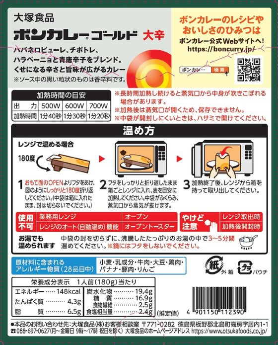 大塚食品 ボンカレーゴールド大辛180g×10食 1パック※軽(ご注文単位1パック)【直送品】