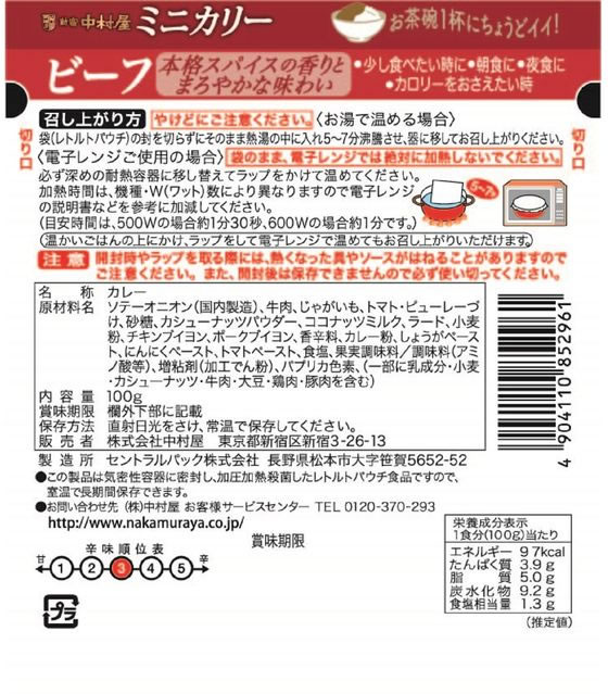 中村屋 ミニカリー ビーフ 100g 1個※軽(ご注文単位1個)【直送品】