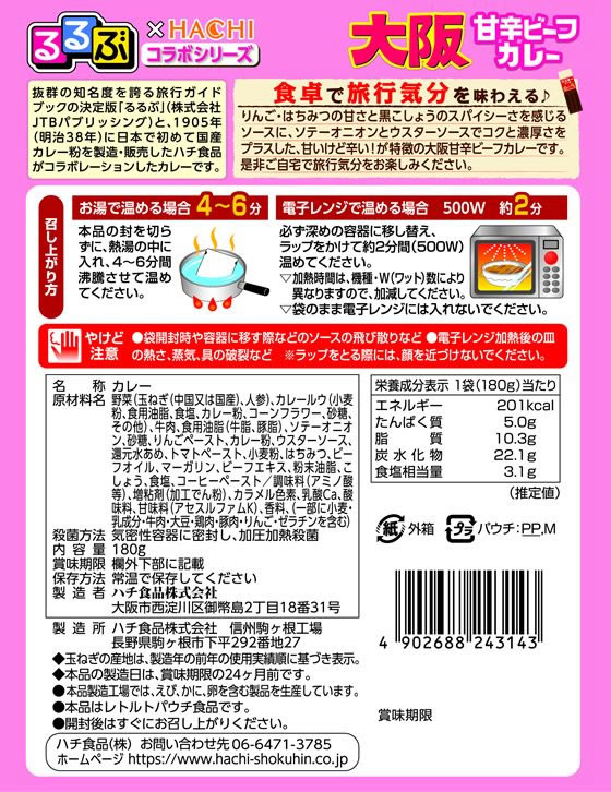 ハチ食品 るるぶ 大阪 甘辛ビーフカレー 180g 1個※軽(ご注文単位1個)【直送品】