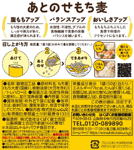 はくばく あとのせもち麦 50G 1袋※軽(ご注文単位1袋)【直送品】